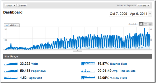 About two years ago (Apr 29, 2009 to be exact), I felt a little bored so I started the journey of writing a technical blog. Did I just sound very politic? YES, I suppose that I was a bit. In fact, one of the important reason is, I don't usually keep track of every details in a very organized way, sometimes I can lose track of what I just did a few days ago or probably a few months ago. In China, we have a say, "The palest ink is better than the best memory". So writing a technical blog not only helps challenges myself, but also has helped me keep track of such details. However, there is another important motivation, which should be kept just between you and me, I have been sick of walking into an interview room with a piece of resume in my hand, which doesn't prove anything nowadays. So I thought writing a technical blog would prove that I am capable of doing some little things, that was just the selfish part of myself. However, I didn't realize in the beginning that writing a blog was actually quite a challenge. As you may not appreciate, it did take me quite a lot of personal spare time to keep this blog updated, even though I am well aware that I haven't actually written much so far. I have to admit, my writing was terribly slow and my English was often broken (thanks for bearing with me all the time), and often times I had to revise my blog posts again and again just trying to make them readable. On a side note, I have quite a lot other topics in my mind that I just haven't got the time to write them down, including some pretty cool (only in my own opinion though) ideas that I wanted to implement on MSCRM platform.